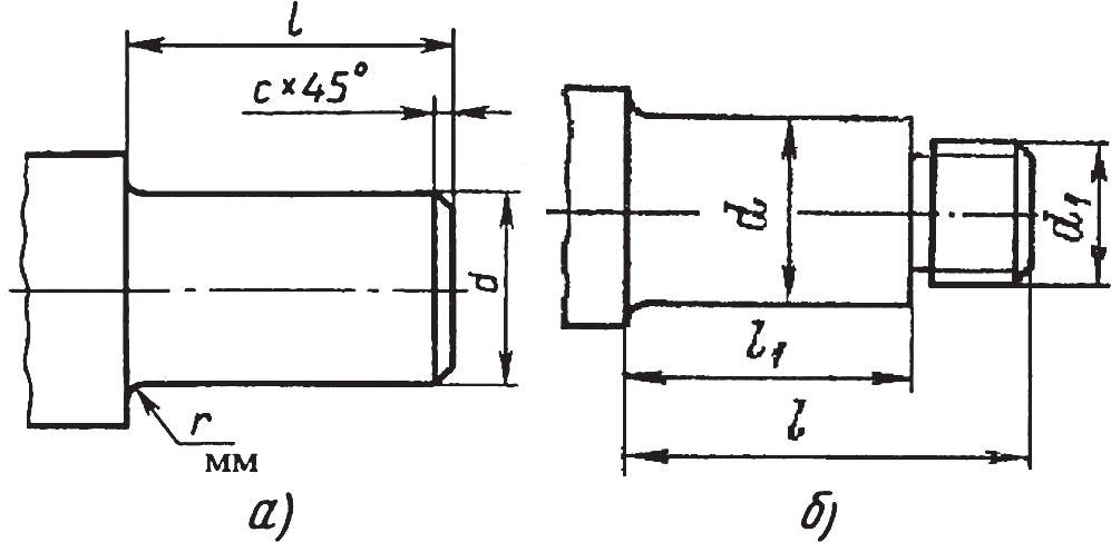 Рис. 4. Концы валов цилиндрические: а – шейка; б – шейка с наружной резьбой