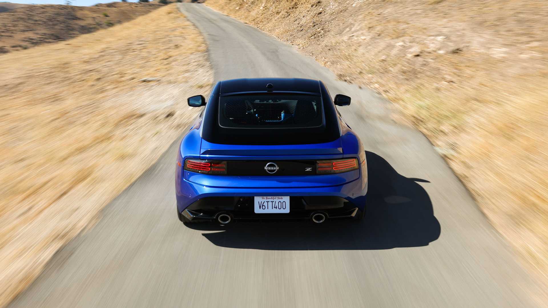 Nissan Z показан в двух версиях: Sport и Performance. Последняя отличается тонким спойлером на крышке багажника и колёсными дисками бóльшего диаметра — 19 дюймов (тут стоят шины Bridgestone Potenza S007 255/40 спереди и 275/35 сзади) против 18 у Sport (эта версия получила шины Yokohama Advan Sport размером 248/45).