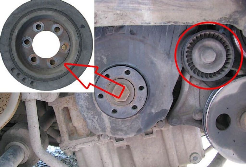 Демонтаж шкива коленчатого вала. Для этого предварительно удаляется правый подкрылок;