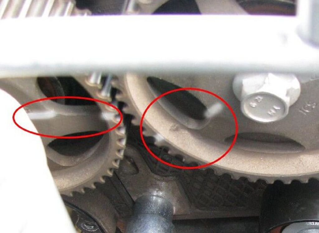 Теперь важно нанести отметки о верном положении ремня, звезд и коленвала, чтобы потом верно установить новый комплект