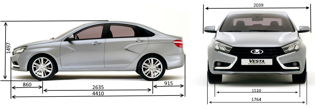 Особым вниманием автолюбители отмечают новую разработку вазовских дизайнеров, которой стал Х-образный стиль Lada Vesta. Стоит более пристально взглянуть на габариты автомобилей: