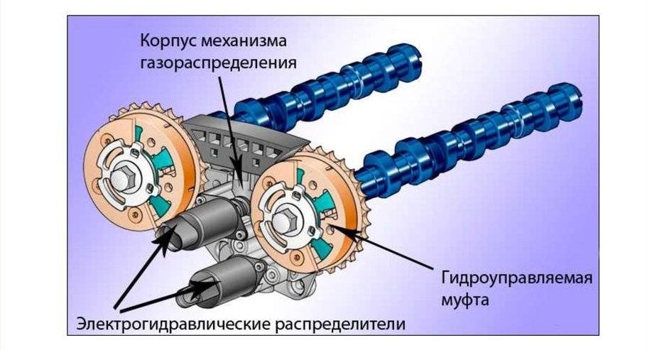 На впускном распредвале действует VVTi. Изменяет фазы на 50 градусов. Является слабым местом агрегата. При смене цепи ГРМ потребуется заменить и звездочку VVTi.