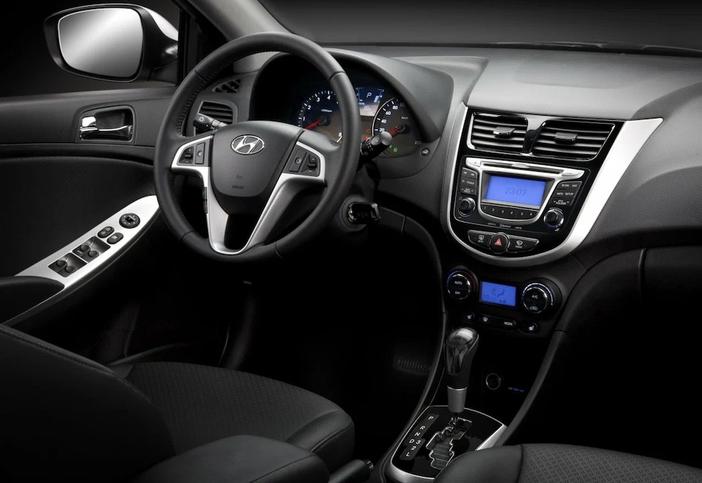 Размеры автомобиля Хундаи идентичны габаритам Киа Рио 3-его поколения. Однако, вместительность салона и багажника уступает корейцу.