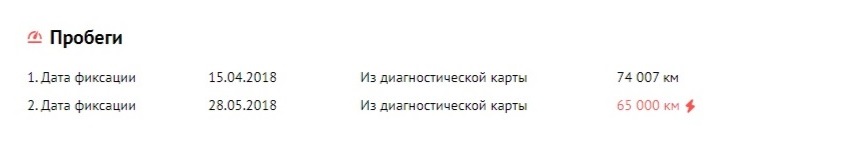 В апреле 2018-ого года зафиксирован пробег более 70 000 км, в мае он скручен до 65 000 км.