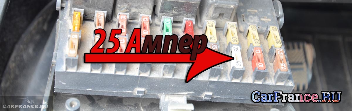 | F18 — 25А | Лампа освещения вещевого ящика. Контроллер отопителя. Прикуриватель. |