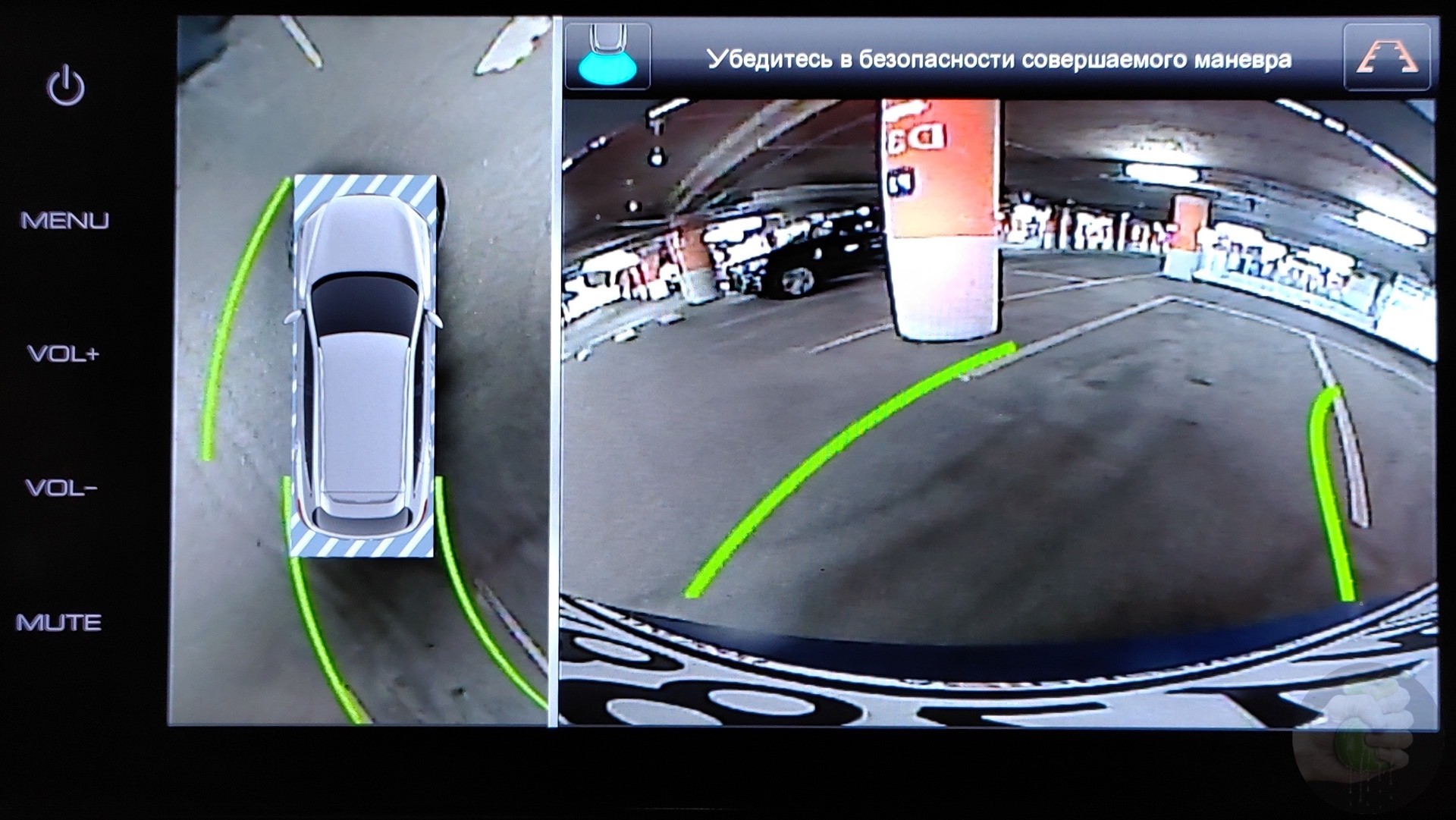 Камера 360° — штука полезная, сильно выручает при манёврах, но качество изображения низкое. Заодно ещё добавлю, что включаешь заднюю передачу, а система задумывается на несколько секунд, прежде чем включить камеру. Да и с остальными режимами то же самое. Не очень удобно, когда собираешься резко развернуться на дороге.