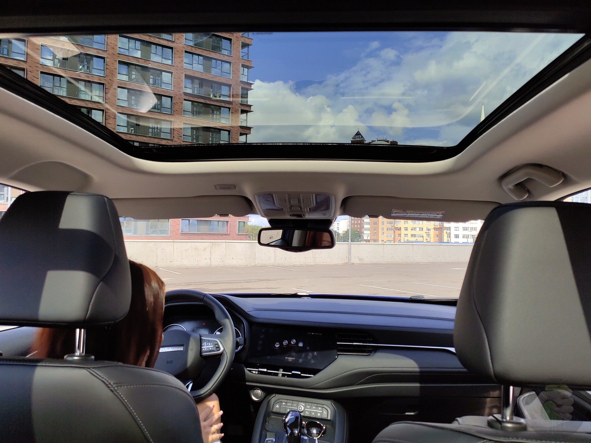 Нам дали на тест самую мощную версию с двухлитровым мотором мощностью 190 л. с., он знаком по модели Haval H9, только тут меньше мощность. Найти кнопку для переключения режимов работы коробки передач удалось не с первого раза, но спорт-режим я опробовал. Мне говорили, что машина в нём едет значительно бодрее и веселее. Если под этим подразумевать рёв движка при утопленной в пол педали газа, то да. Но зачем выжимать из кроссовера все соки? Тем более что здесь стоит коробка передач собственной разработки, эдакая китайская DSG.