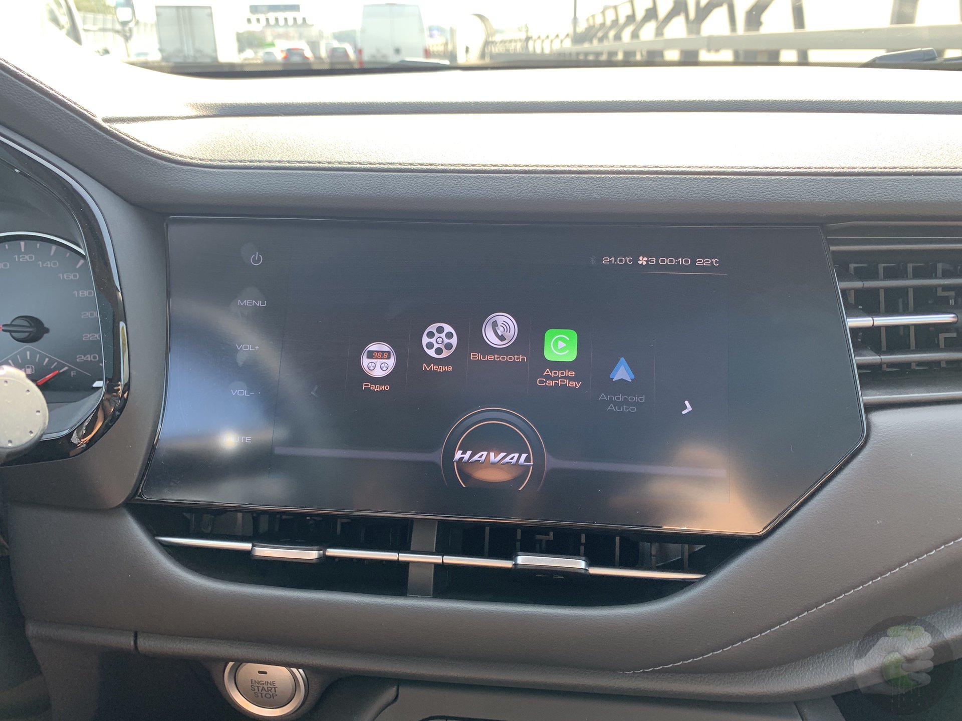 9 дюймовая система управления, многофункциональна, она прекрасно отображает все 4 камеры, кстати с динамической разметкой (отображает парктроники), есть куча различных функций, есть «ANDROID AUTO» и «APPLE CARPLAY».