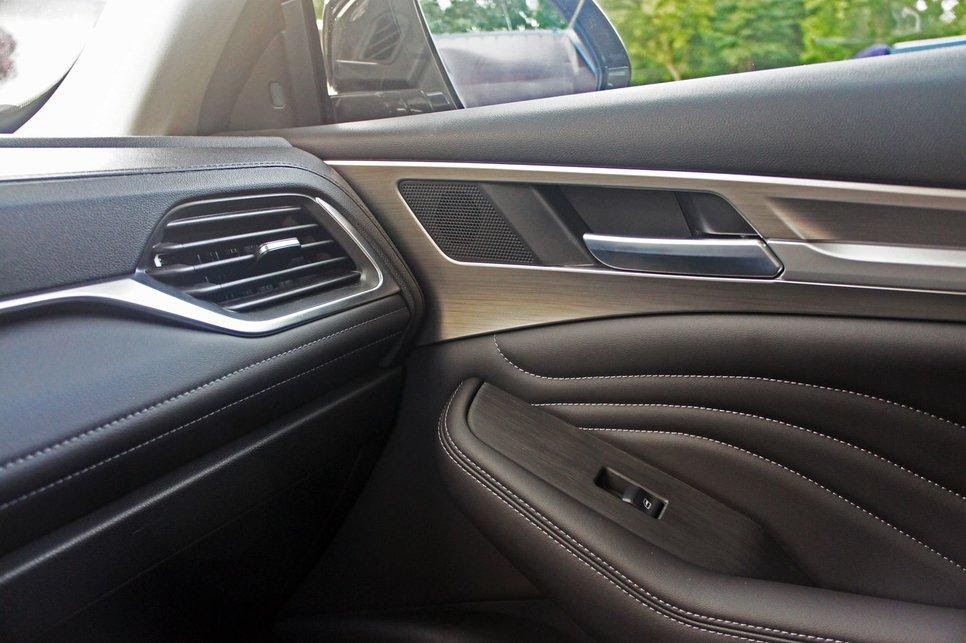 Двери сверху мягкий пластик, в середине двери «ЭКОКОЖА», блок кнопок стеклоподъемников сделан в блоке похожем на дерево (смотрится интересно), внизу жесткий пластик (в который вписан динамик). Стоит отметить, что автоматический стеклоподъемник здесь один, только водительский. Динамики, даже в максимальной комплектации, лично меня не впечатлили – не хватает басов (хотя я не меломан, но в моей KIA OPTIMA музыка лучше).