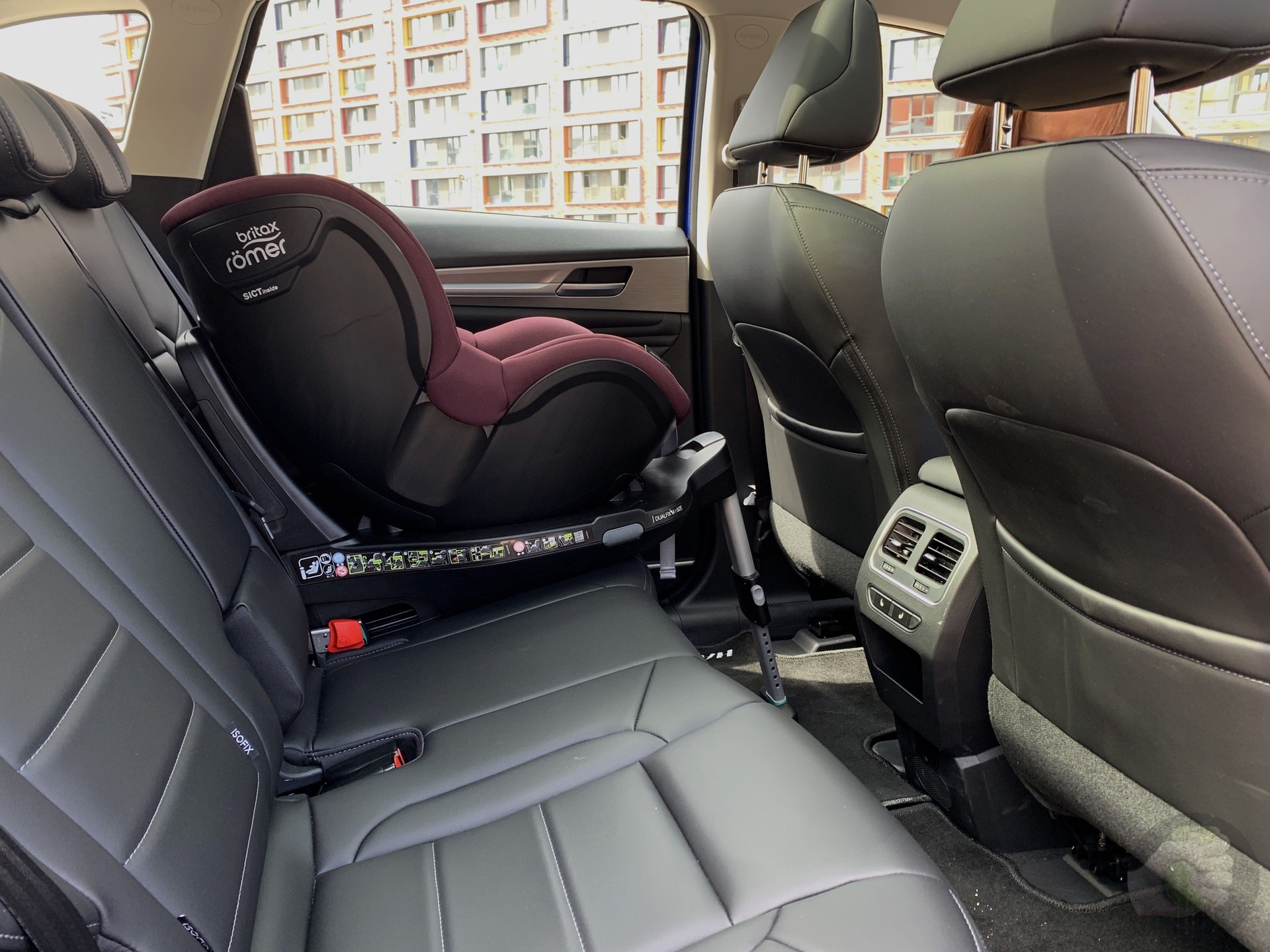 На заднем диване просторно, даже подогрев сидений имеется. Большое детское сиденье влезло с хорошим запасом, места много. А как ребёнку понравилась панорамная крыша, это восторг и ликование.