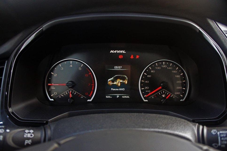 Электромагнитную многодисковую муфту NexTrac, которая подключает задние колеса, для Хавейла поставляет крупнейший американский производитель автомобильных компонентов BorgWarner. К железу претензий нет — зло в управляющей электронике. При пробуксовке она сначала долго думает, сколько тяги передать назад. Потом спохватывается, резко замыкает муфту, и автомобиль получает увесистый пинок. Правда, связав две оси, автоматика очень толково распределяет момент по колесам. Это подтвердил и наш тест — Haval F7 стал первым «китайцем», который съехал с двух роликовых платформ.
