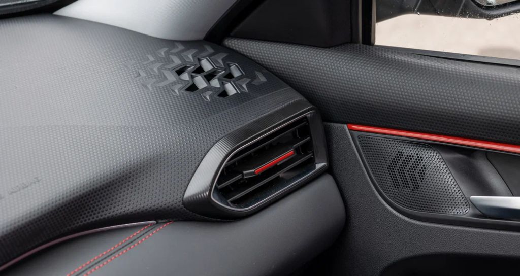 Салон имеет ряд ярких дизайнерских решений, чего стоят хотя бы дефлекторы обдува передних боковых стекол, которые встроены в узор панели.