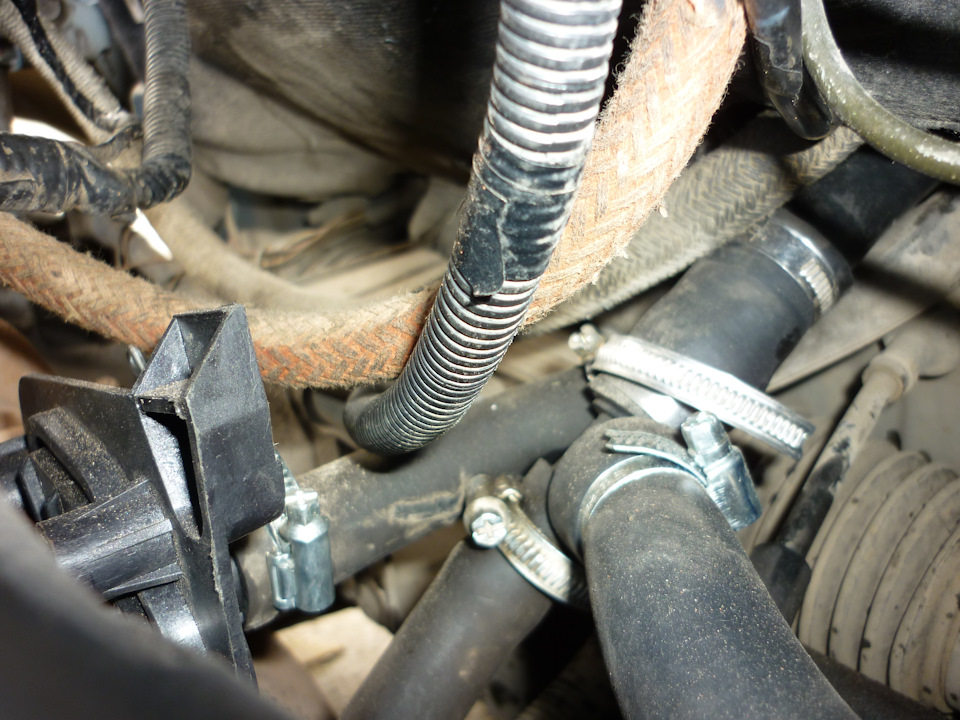 - Отсоедините хомуты вакуумного патрубка от корпуса отопителя;