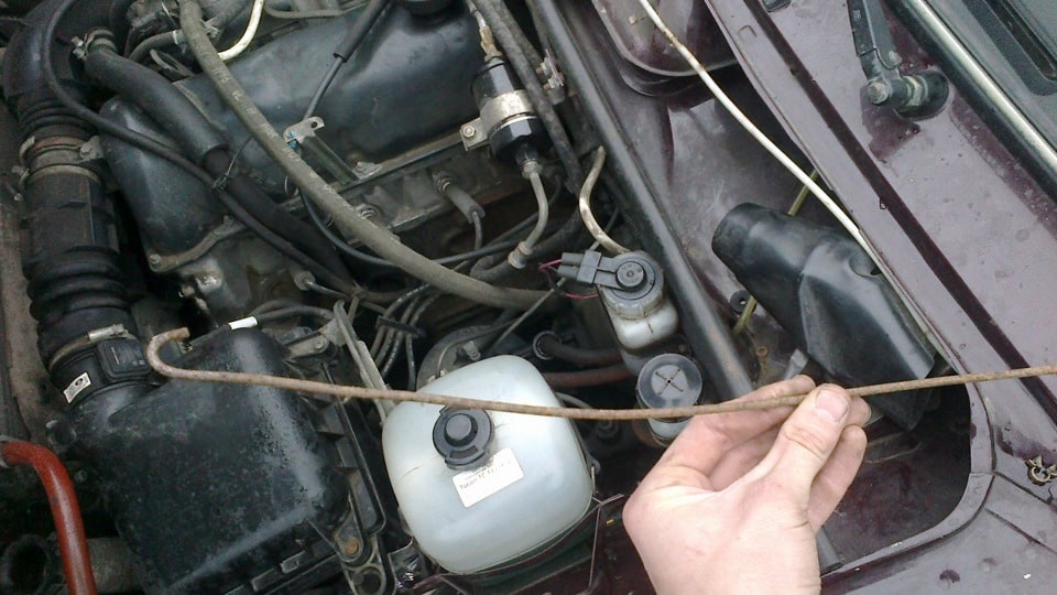 Для начала нужно приподнять свободный край капота с левой стороны машины и вставить в образовавшийся зазор кусок проволоки. Концом нужно нащупать запорный механизм и надавить на него, — рычаг тросика сдвинется и капот откроется.
