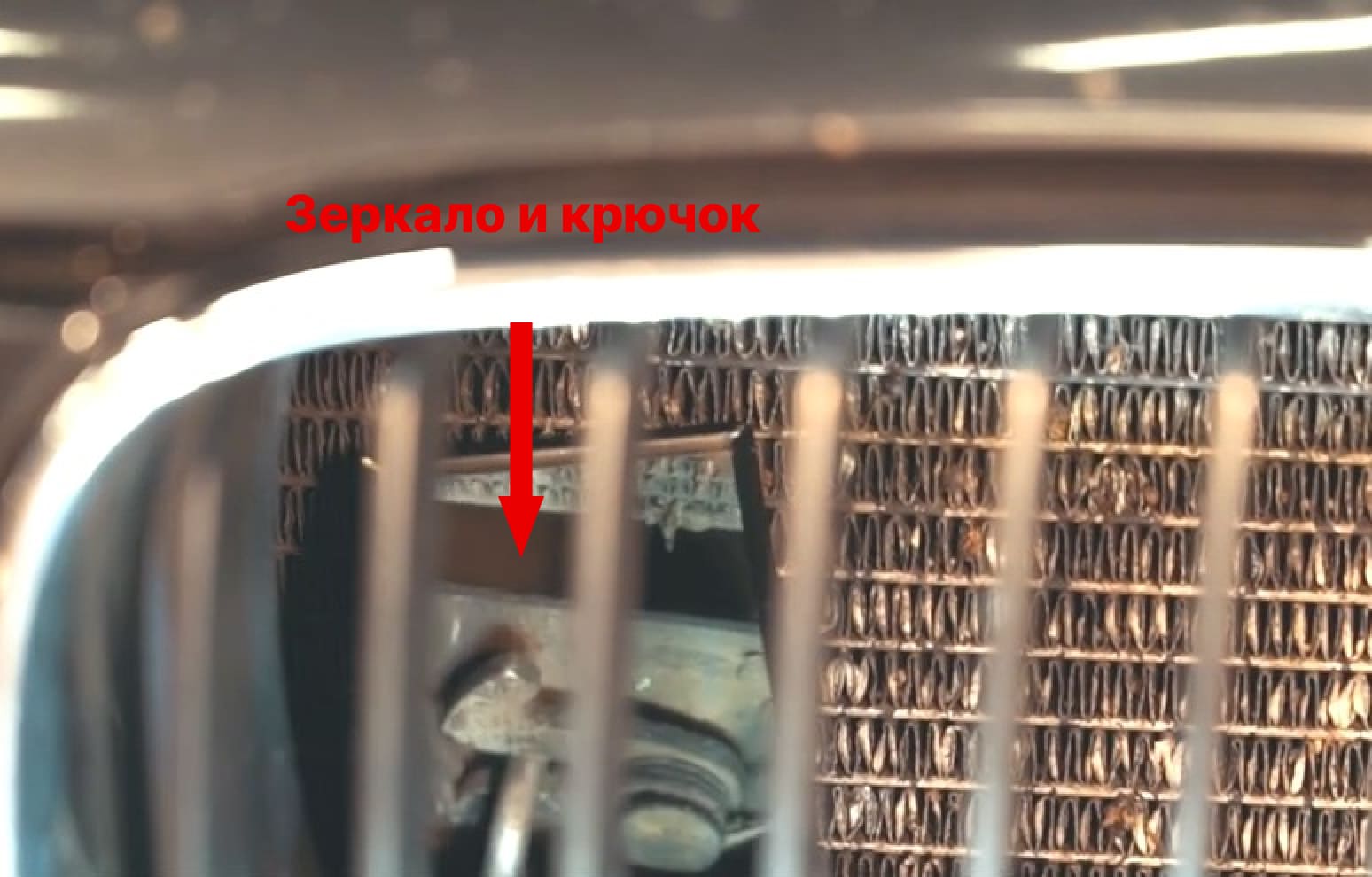 Открыть капот с оборванным тросиком у замка намного сложнее. Прежде всего нужен доступ к защелке для ее принудительного открытия. Можно подобраться к ней через решетку радиатора. Для этого необходимо воспользоваться фонариком и отверткой подлиннее, либо самодельным проволочным крючком. Просунув инструмент сквозь решетку радиатора попробовать отщелкнуть замок, нажав на место крепления тросика. Проводя все манипуляции с инструментом желательно обклеить радиаторную решетку малярным скотчем, дабы избежать царапин.