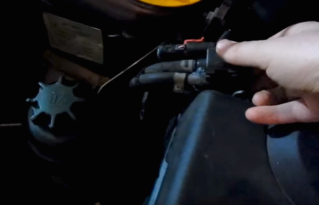 Потребуется отключить штекер из катушки зажигания, для чего следует нажать на его защелку, далее потянуть штекер вверх.