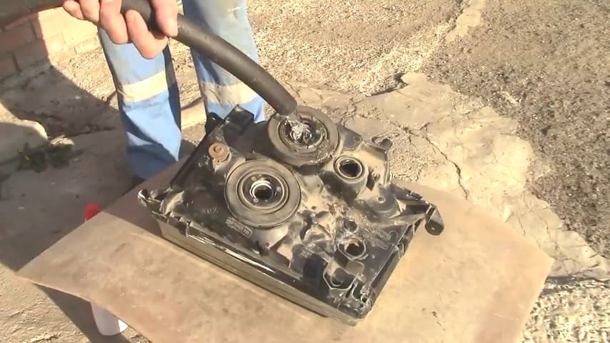 Далее нужно внимательно осмотреть блок, в котором обязательно будут технологические отверстия. Помывка фары начинается с того, что во внутрь заливается обычная вода. После этого фара энергично встряхивается, чтобы вода намочила все внутренние поверхности и пыль, которая накапливается изнутри. Далее вода сливается через те же отверстия.