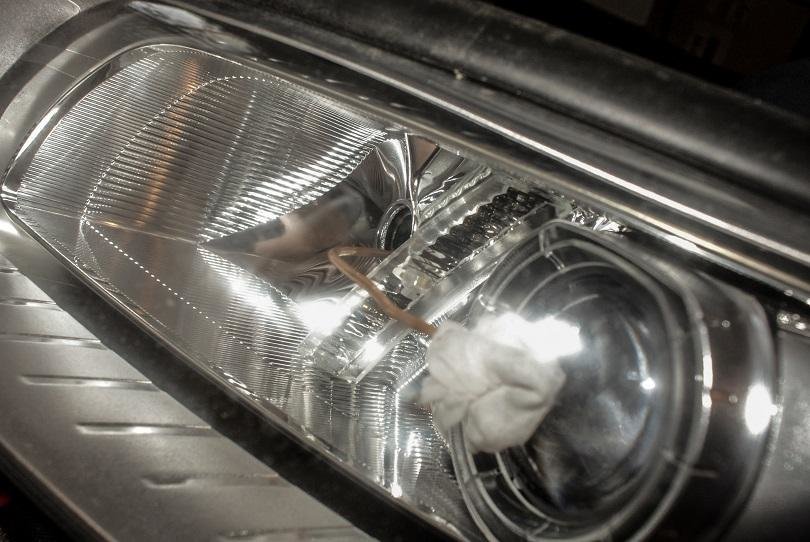 - Протирают фару чистой влажной материей. Если результат неудовлетворительный, процедуру повторяют несколько раз.