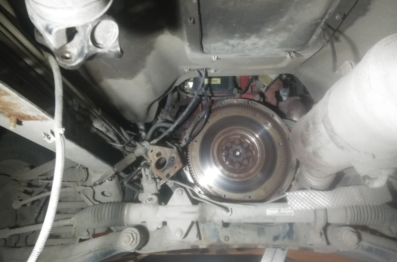 Картер сцепления, отлитый из алюминиевого сплава, прикреплен к блоку цилиндров двигателя Cummins ISF2.8 болтами. Нажимной диск соединен с кожухом пластинами, которые одной стороной приклепаны к кожуху, а другой — к нажимному диску.