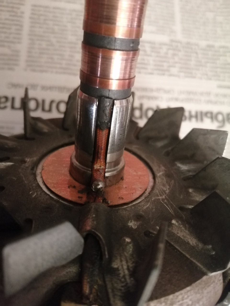 Иногда контактные кольца проворачиваются относительно ротора, что тоже ведет к обрыву цепи возбуждения. Замените ротор или приклейте проворачивающееся кольцо к валу с помощью эпоксидного клея.