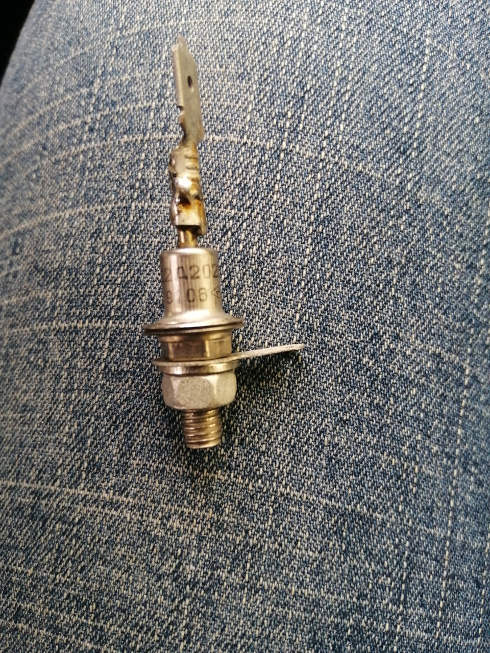 Диод изначально ставил вот такой, думал если поменяю, мерцание исчезнет, но всё осталось точно также и с диодом другой маркировки. При снятии щёток обнаружил износ коллектора, токоприёмных колец, причём неравномерный. Думал возможно в этом причина, снял генератор, купил токосъемные кольца, правда не те, пришлось переделать, потому что других не найти.