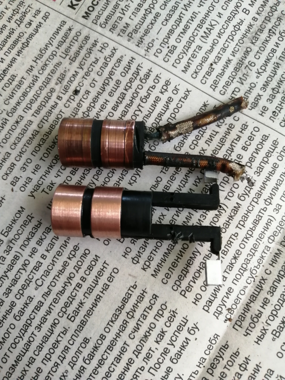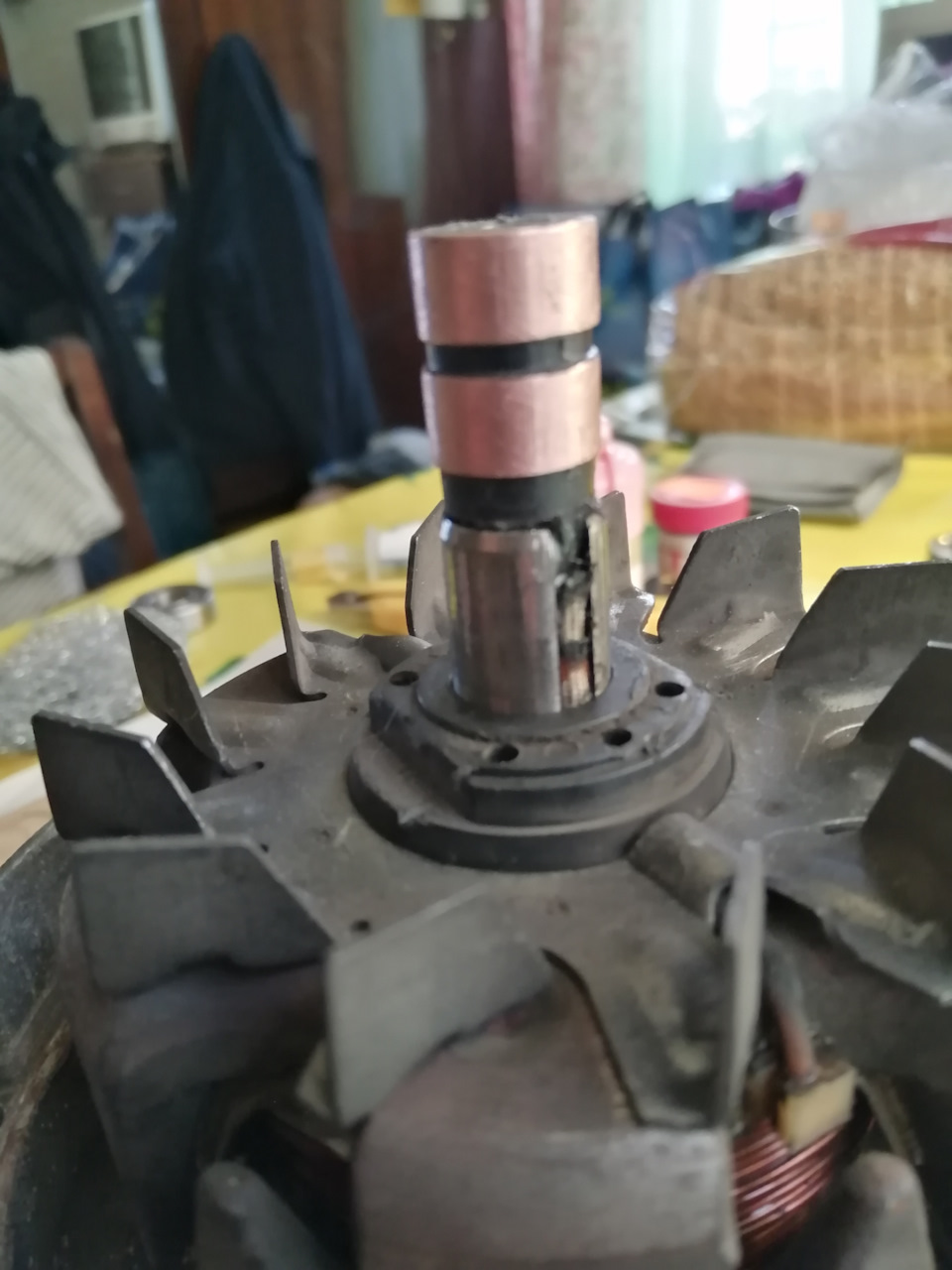 Под замену пошёл задний подшипник, вскрыл его и набил синей смазкой, был почти сухой, передний крутиться без шумов, да и открутить в домашних условиях шкив я бы и не смог, поэтому даже и не пытался. Отверстие на вал в новых токосъемных кольцах намного меньше, пришлось расстреливать, соответственно центр ушёл и появилось небольшое биение. Но, насколько я понял, это ни на что не влияет, всё работает чётко, после ремонта уже неделю отъездил. Генератор прамо электро 51 серии, но не всё так просто, как везде пишут и говорят, токосъемные кольца разные. Хотя кольца покупал для этого генератора, причём в сервисе по ремонту генераторов и стартеров, больше нигде не смог их найти.После сборки с небольшими приключениями всё заработало, но мерцание осталось, как и редкое горение лампы зарядки после заводки. Лежал старый диодный мост, решил оттуда взять диод, думаю, он ведь родной, значит никаких изменений не должно быть в горении фар, потому что если напрямую соединяешь, без диода, мерцание исчезает, но низкая зарядка.