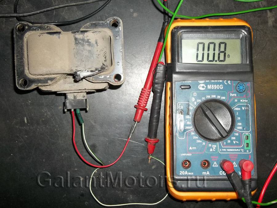 Для того чтобы проверить сопротивления ИКЗ необходимо воспользоваться мультиметром. Следует отметить, что проводить измерения сопротивления необходимо на холодном двигателе, т.к. сопротивление обмоток катушки сильно зависит от ее температуры.