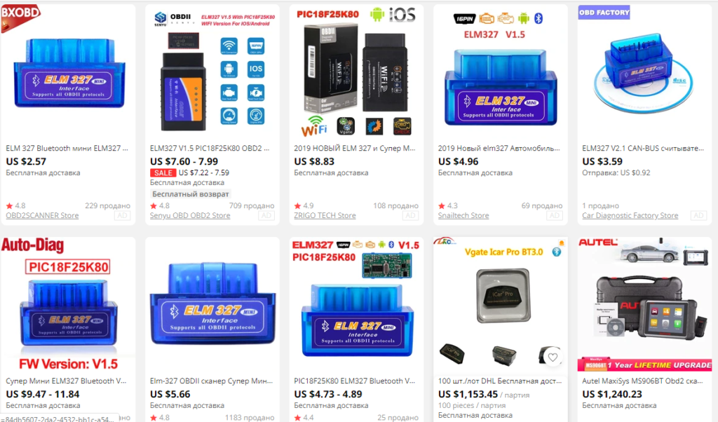 Сканер ELM 327 на сайте АлиЭкспресс стоит от 5 до 10 долларов в зависимости от версии.