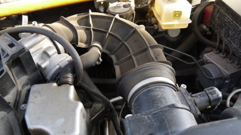 - Передавите в нескольких точках резиновый патрубок, ведущий от силового агрегата к корпусу усилителя.