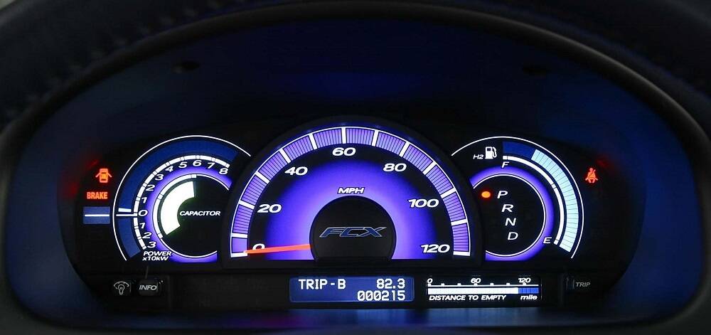 Панель приборов отображает скорость на спидометре и считает пробег на одометре.