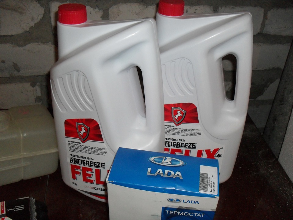 Для полной замены охлаждающей жидкости (охлаждающей жидкости) нам нужно купить канистру на 10 литров или две 5-литровые биты каждая.
