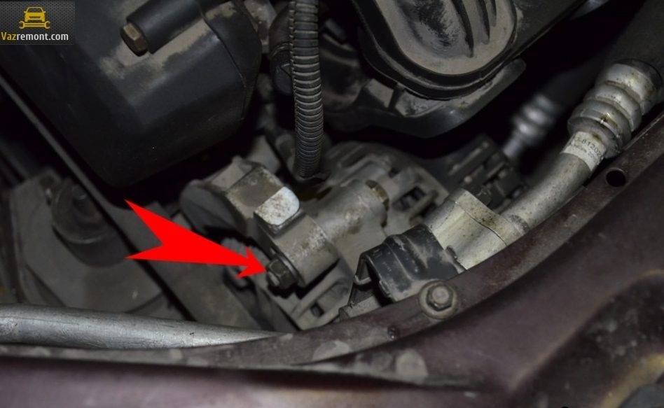 У меня авто с кондиционером, Трубки мешаются. Возле гены находится два болтика, их убираем (на фото болтики видны). Когда будете вынимать впускной коллектор, трубки надо отогнуть, не бойтесь погнуть, там резиновые вставки.Снимаем ремень генератора, откручиваем верхнее крепление и аккуратно монтировкой отодвигаем гену в сторону радиатора.
