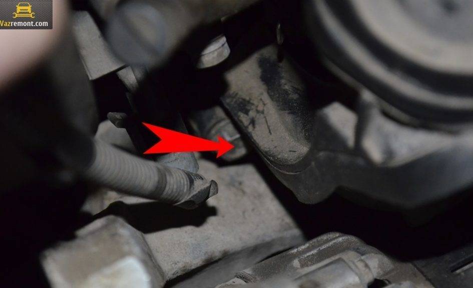 - При помощи ключа отвинчивается крепеж, который фиксировал ремень ГРМ, снимается ролик натяжения.