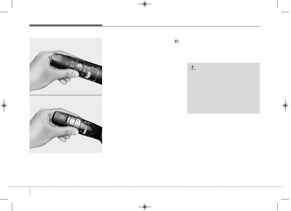 Во время работы противоту-манные фары потребляютбольшое количество электро-энергии. Используйте их тольков условиях плохой видимости воизбежание возможного разрядааккумуляторной батареи и пло-хой работы генератора.