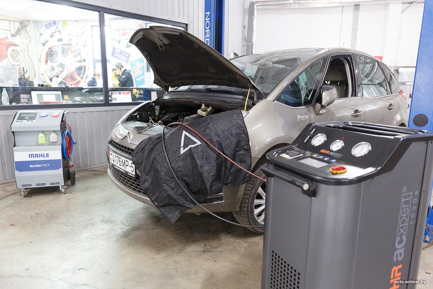 — Промывка системы кондиционера — это недешевое удовольствие, так что до этого лучше не доводить. Просто нужно должным образом следить за машиной. Промывка проходит следующим образом: снимаются компрессор, основной радиатор, фильтр-осушитель и меняется клапан ТРВ (устанавливается другой клапан без иглы испарителя). Далее подключается промывочный аппарат и образуется замкнутый круг. В зависимости от степени загрязнения вся система промывается несколько раз. Иногда необходимо промывать систему кондиционера 80—90 раз, до полной очистки. Если систему не промыть до конца — после установки выйдет из строя компрессор, — пояснил Андрей.