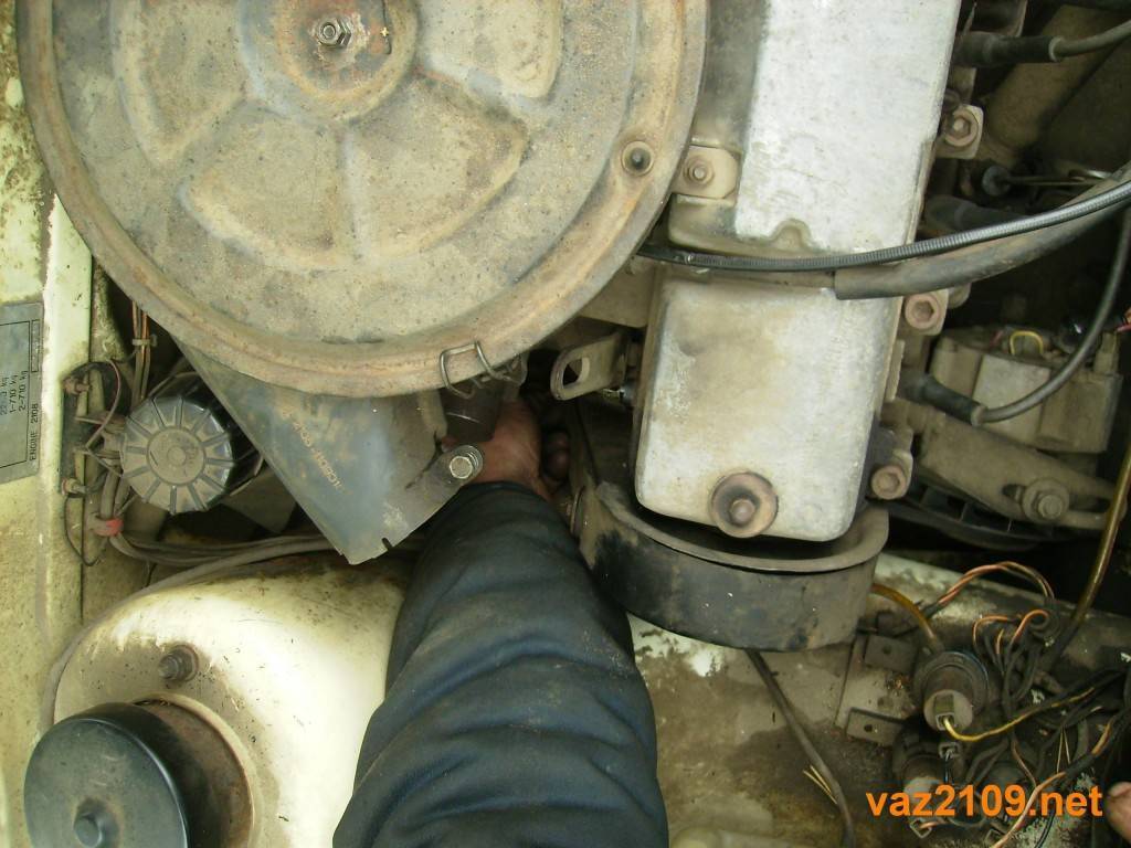 - Следующим этапом ослабляется ремень привода генератора, и затем он снимается с коленвала заодно со шкивом. Удерживающий его болт необходимо оставить на месте.
