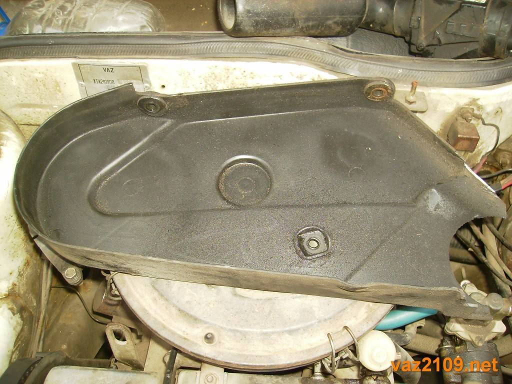 - Полностью снимаем защиту ремня, для этого понадобится ключ на 10, которым вы открутите 3 болта с головкой, на этом этап подготовки считается оконченным, теперь можно смело приступать к работе.