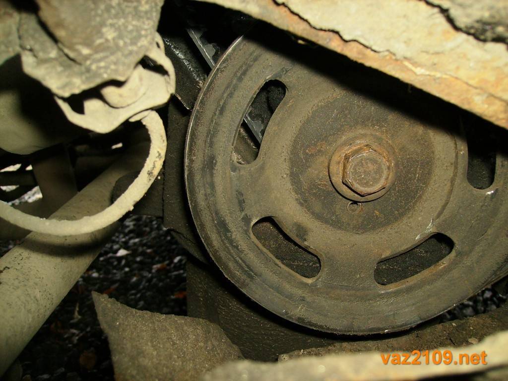 После того, как открутили гайку,достаем ролик привода генератора вместе с ремнем.