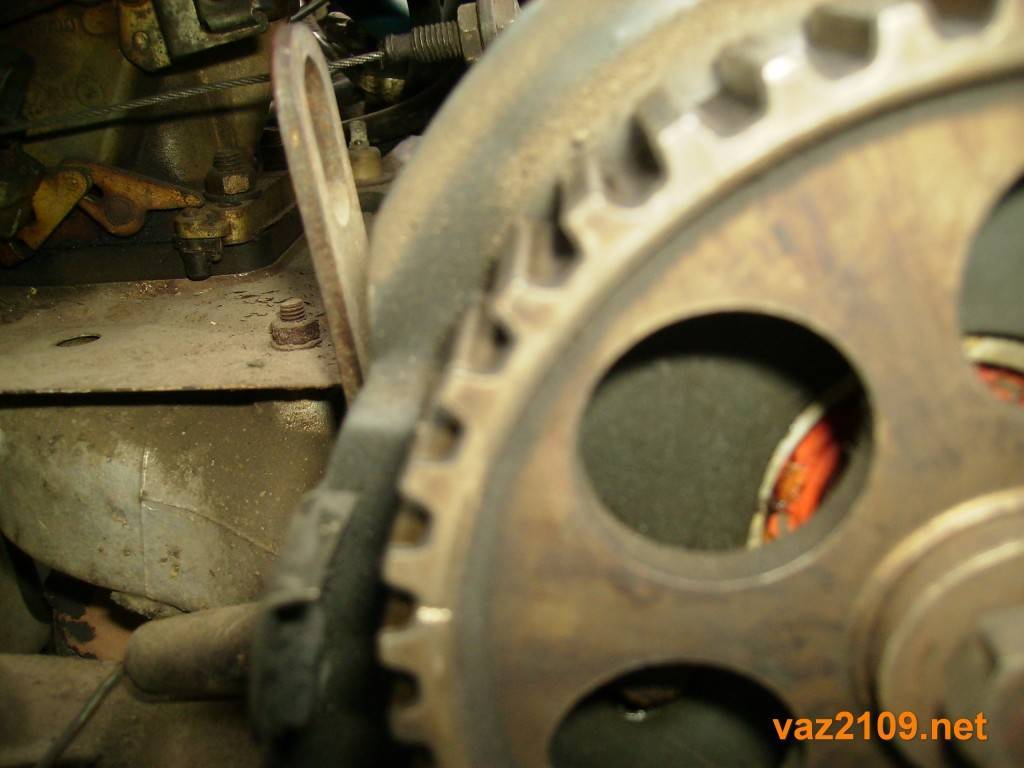 Регулируем зазор от датчика коленвала до зубчатого диска