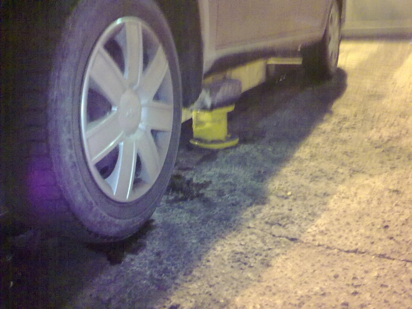 - Переднюю часть машины нужно поднять так, чтобы колёса находились в воздухе.