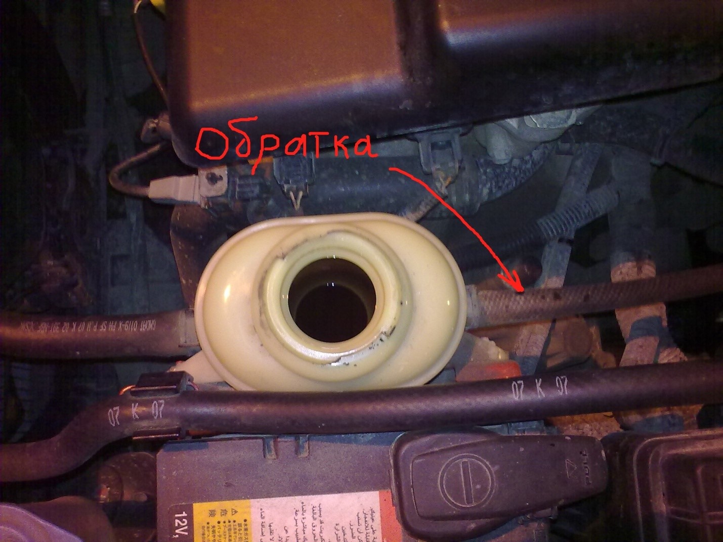 - Как только уровень начал падать, доливаем масло до максимума. Новая жидкость в бачок ГУР.