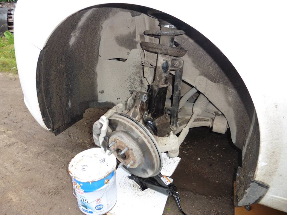 5. После вытаскивания этих двух болтов поворотный кулак необходимо чем-нибудь подпереть. Я подпер банкой с краской);