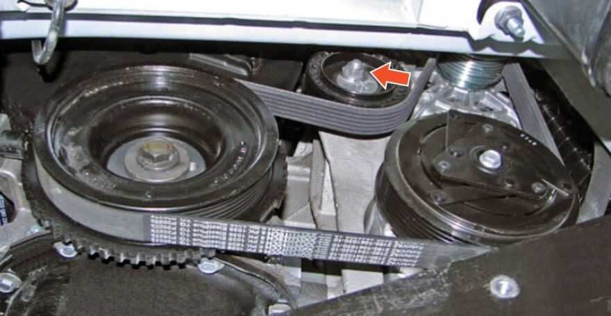 Болт крепления натяжного ролика затягивается моментом 33,2-41,2 Н·м.