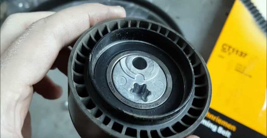 После демонтажа ремня ГРМ необходимо убедиться в работоспособности натяжного и направляющего ролика и при необходимости их поменять.