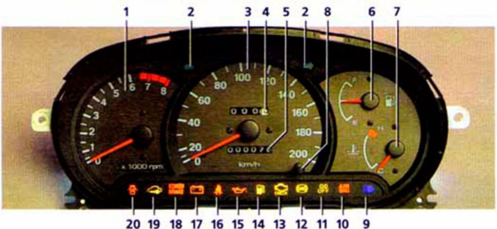 7 – указатель температуры охлаждающей жидкости.