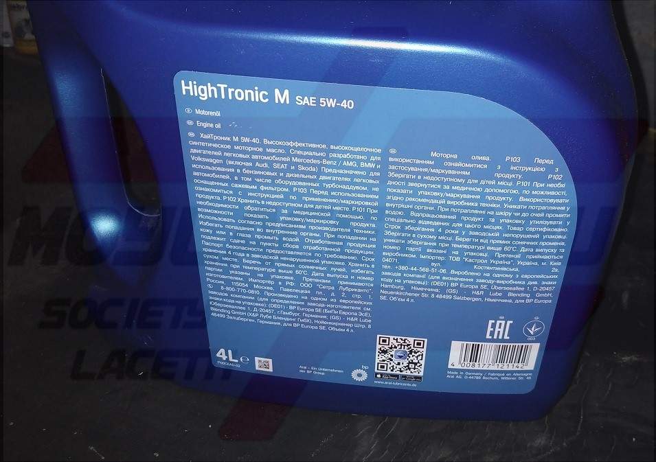 Для Шевроле Лачетти же предписан класс по АСЕА А3, к которому как раз и относится масло ARAL HighTronic М SAE 5W-40, которое использую я и у которого нет допуска GM.