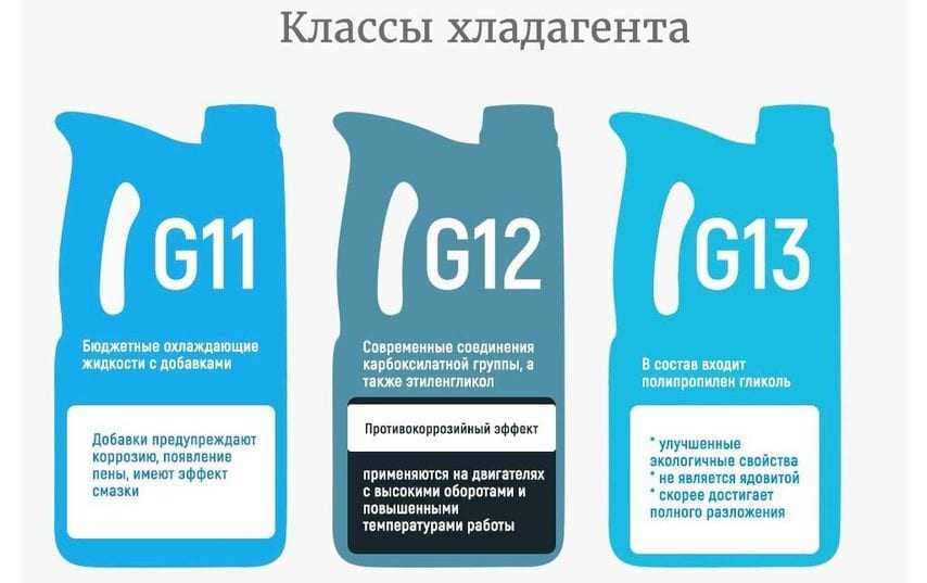 Сегодня большинство антифризов делаются на основе этиленгликоля и делятся на три класса G11 – G13. В СССР в качестве охлаждающего раствора использовалась жидкость, которая получила название «Тосол».