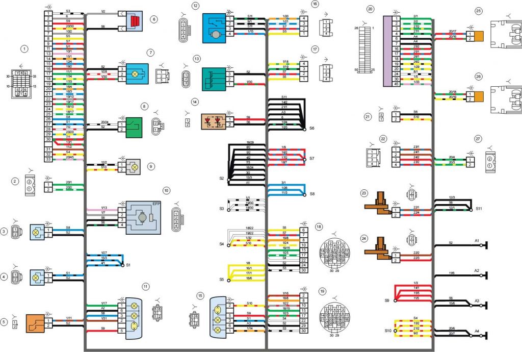 Лада Гранта: схема подключения приборов заднего жгута проводки