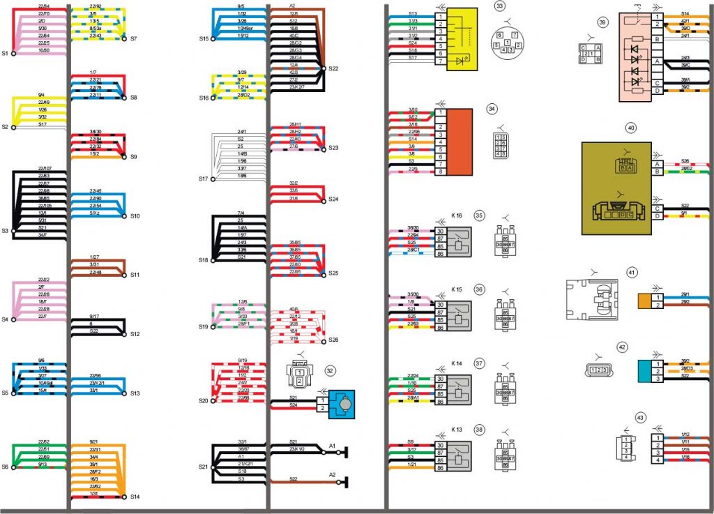 Указанная часть является самой сложной. Большое количество выводов и миниатюрный размер клемм значительно усложняет поиск необходимой группы: