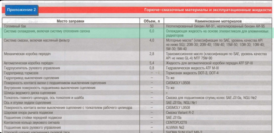 Марка охлаждающей жидкости, рекомендованная заводом-изготовителем автомобиля, указана в приложении 2. Уточните у дилера-продавца автомобиля марку залитой в ваш автомобиль жидкости.